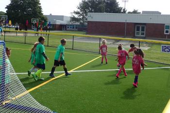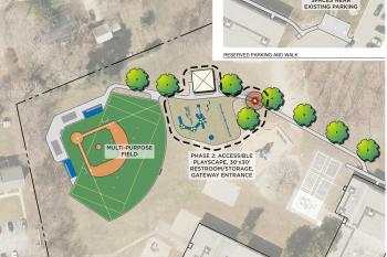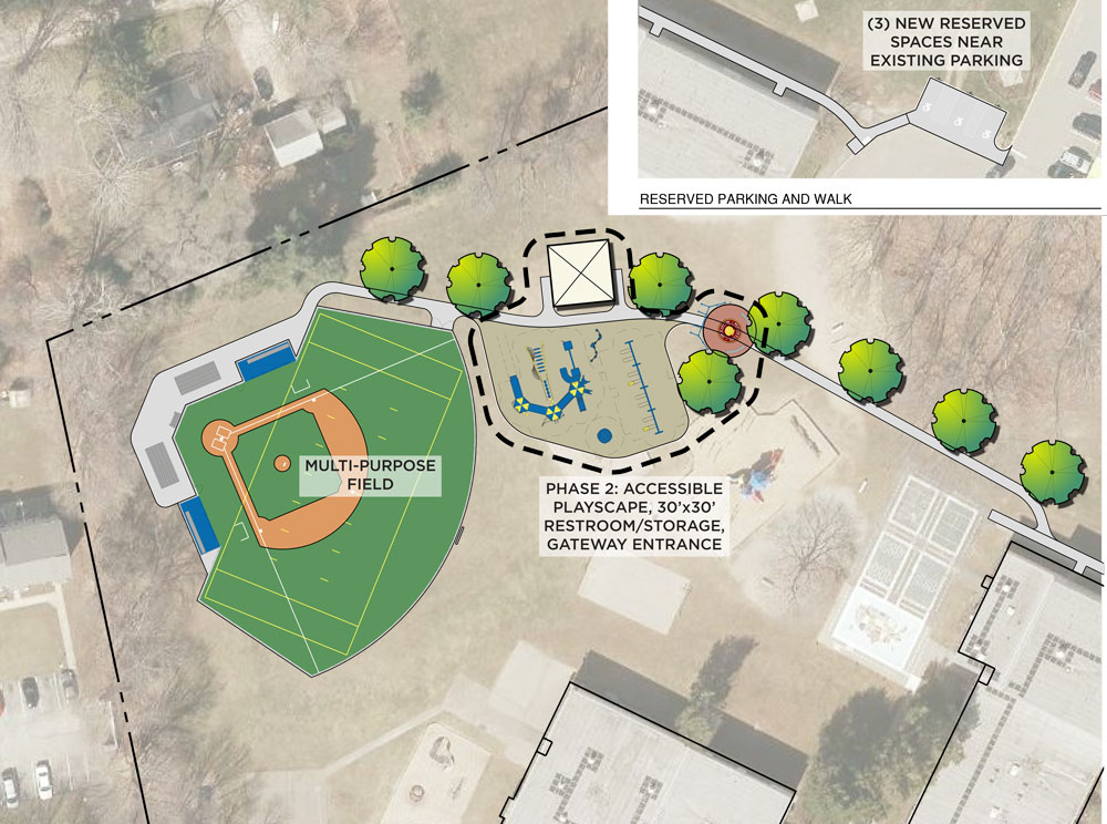 This is an extended field which accommodates other sports such as soccer, flag football and lacrosse on the rectangular portion of the field. Future plans (Phase 2) include an accessible playground and a restroom facility.